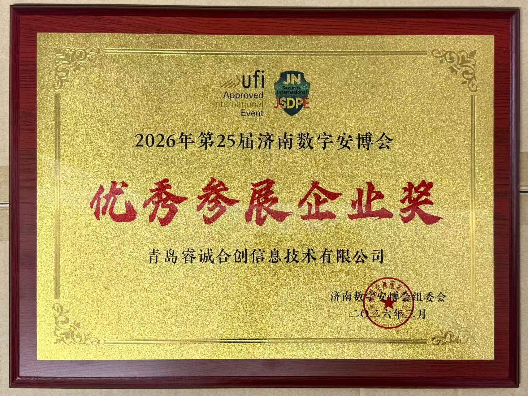 凭借出色的产品展示、专业的技术交流与高效的参展服务,青岛睿诚合创在本届展会中荣获优秀参展商奖。这一荣誉是行业对公司技术实力、产品品质及市场价值的高度认可。